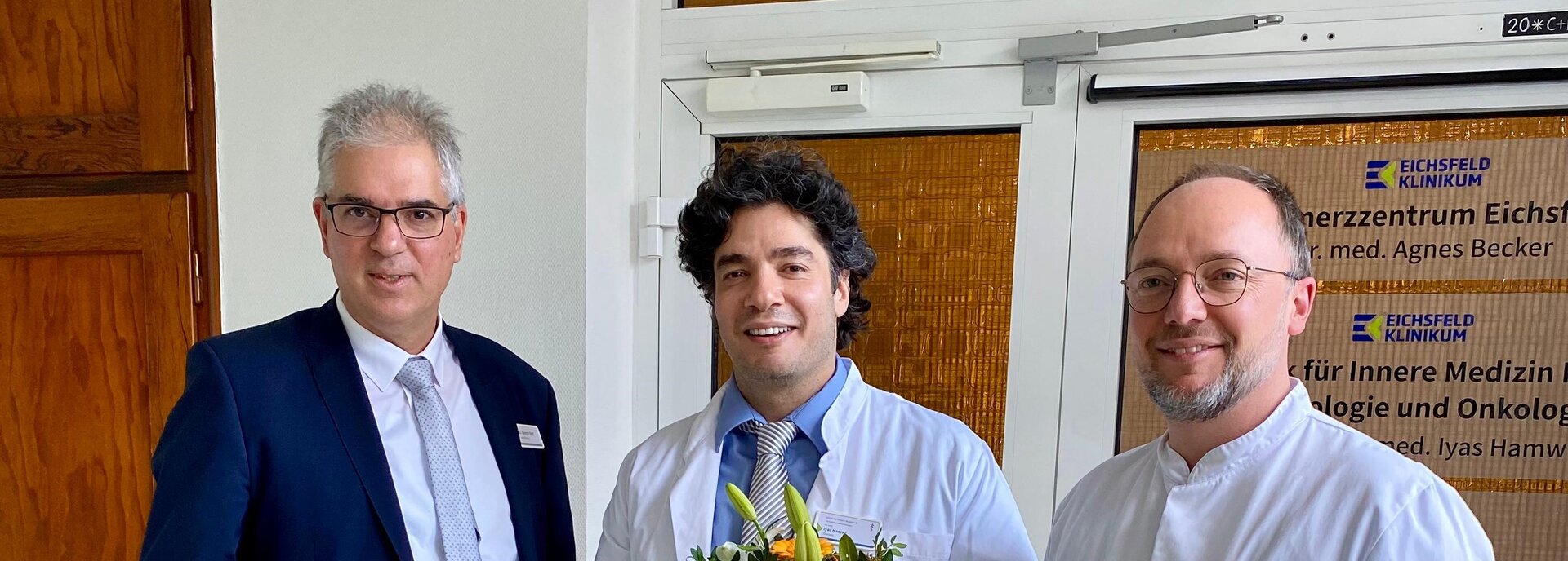 Das Eichsfeld Klinikum freut sich, dass Dr. med. Iyas Hamwi seit November die Position des Chefarztes der Klinik für Innere Medizin III – Hämatologie und Onkologie übernommen hat. Der erfahrene Mediziner ist bereits seit Februar 2024 am Eichsfeld Klinikum tätig, zuletzt als Sektionsleiter die Klinik für Innere Medizin III – Hämatologie und Onkologie. Besonderes Anliegen ist es Dr. Hamwi das lokale und regionale Versorgungsangebot für Krebspatient*innen im Eichsfeld sowohl ambulant als auch stationär auf hohem Niveau weiter auszubauen.