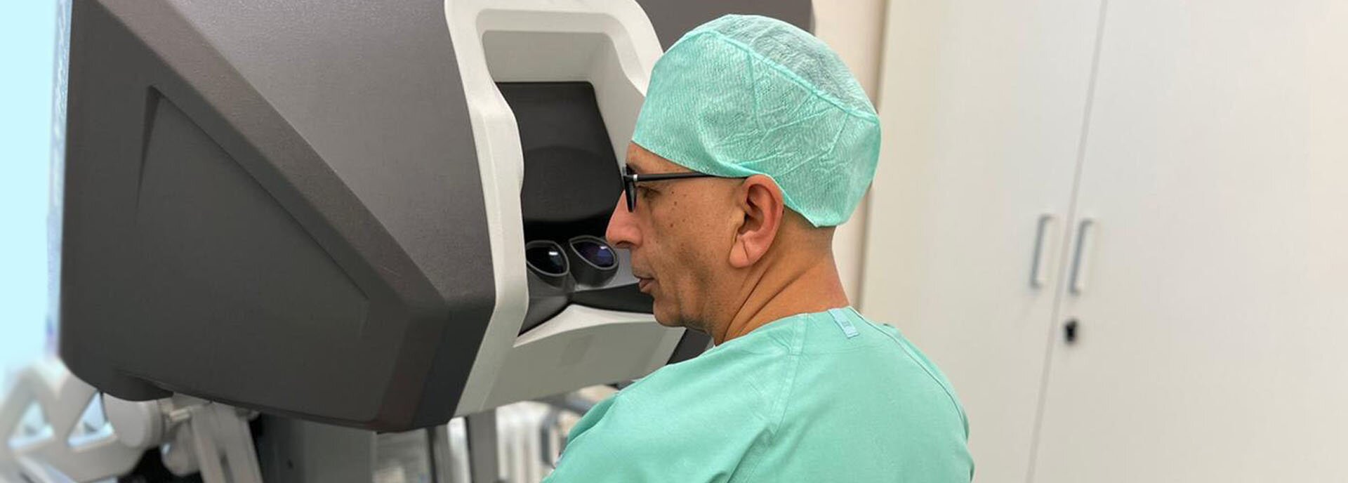 Robotik-Systeme bestehen aus einem Roboter-Assistenten und einer Bedienkonsole, an der die Operateur*innen sitzen und die Instrumente über ihre Handbewegungen steuern. Minimale Zitterbewegungen werden ausgeglichen und das Sichtfeld wird durch die moderne Bildgebung stark vergrößert. Als verlängerter Arm des Operierenden macht diese Technologie minimalinvasive Eingriffe noch sicherer und die Instrumente lassen sich besonders präzise durch die zu operierende Stelle führen.
