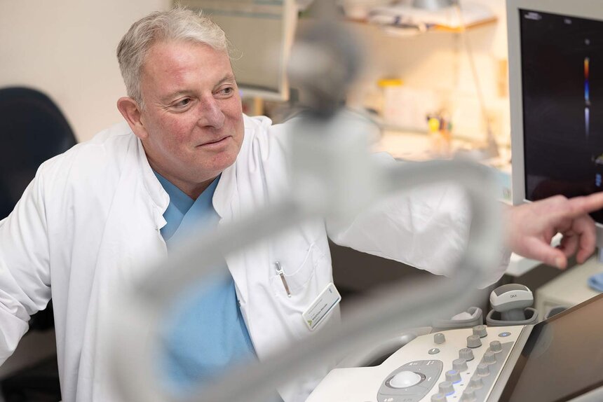 Darüber hinaus verbinden wir dort interventionelle und offene chirurgische Verfahren auf höchstem technischem Niveau. Neben einer hochmodernen Angioanlage steht ein Operationssaal für überwiegend offene Eingriffe bereit. Da wir beide Techniken aus einer Hand anbieten, können wir auf Grundlage der vorherigen Bildgebung (MRT, CT, Duplexsonografie) für jede Patientin und jeden Patienten die individuell optimale Therapie planen – bei Bedarf auch als Kombination beider Verfahren im Sinne sogenannter Hybrideingriffe.