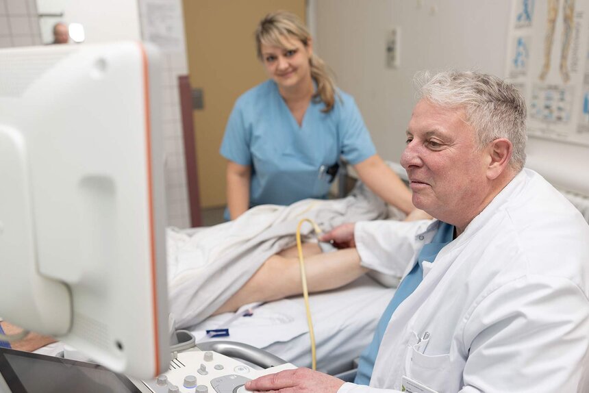In der Klinik für Chirurgie II - Gefäßchirurgie, Endovaskuläre Therapie und Wundtherapie erhalten Patient*innen mit Erkrankungen des venösen, lymphatischen und arteriellen Gefäßsystems eine fachübergreifende Diagnostik und Behandlung. Im Mittelpunkt jeder Behandlung steht die Verbesserung der Gesundheitssituation unserer Patient*innen. Hierfür arbeiten wir eng mit unserer Klinik für Innere Medizin II – Kardiologie, Schlafmedizin und Stroke Unit sowie mit weiteren Kliniken unseres Hauses und niedergelassenen Kolleg*innen zusammen. Durch diese multidisziplinäre Vernetzung können wir individuelle Therapiekonzepte entwickeln, die Mobilität und Lebensqualität nachhaltig fördern.