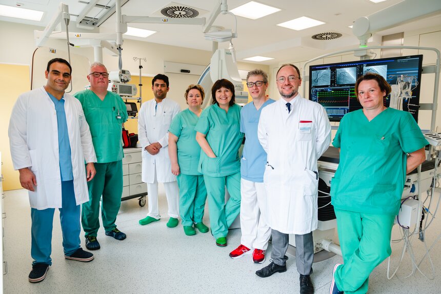 Die Kardiologie hat eine lange Tradition im Eichsfeld Klinikum und bildet seit Jahren die zentrale kardiologische Versorgungsstruktur für die Region. Neben einer hochmodernen technischen Ausstattung profitieren wir außerdem von einer engen Zusammenarbeit mit externen Partnern. Als Lehrkrankenhaus der Universitätsmedizin Göttingen sind wir im engen Austausch mit den dortigen kardiologischen und herzchirurgischen Kolleg*innen darum bemüht, für jeden Fall und jede Erkrankung die geeignete Therapie zu finden. Unser Herzkatheterlabor bietet aktuellste Technik, die unter anderem die Strahlenbelastung für Patient*innen und Untersuchende deutlich minimiert. Das Katheterlabor-Team besteht aus hervorragend ausgebildeten und kompetenten Pflegekräften und Ärzt*innen.