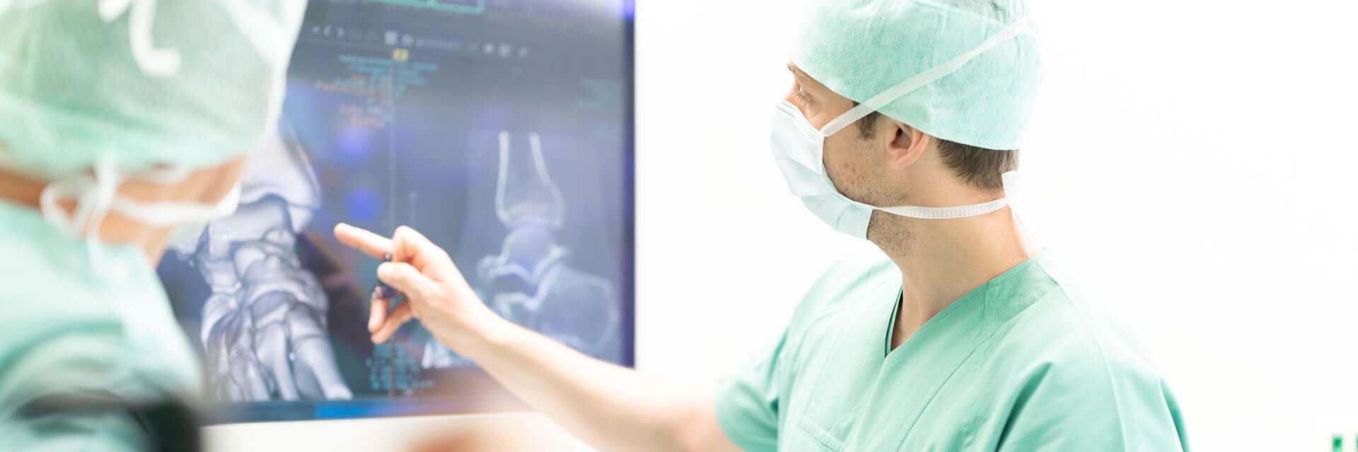 In der Unfallchirurgie behandeln wir alle akuten Verletzungen des Bewegungsapparates, inklusive Spätfolgen von Unfällen – sowohl operativ als auch konservativ (ohne OP). Das Spektrum reicht von der Erstversorgung leichterer Verletzungen bis hin zu schwersten und mehrfachen Verletzungen (Polytraumata). Dafür stehen erfahrene Operations- und Traumateams rund um die Uhr zur Verfügung. Bei operativer Versorgung arbeiten wir soweit möglich minimal-invasiv, das heißt: mit möglichst kleinen Operationszugängen, um das umliegende Gewebe zu schonen und den Heilungsverlauf nicht unnötig zu erschweren. Bekannte minimal-invasive Verfahren im Bereich der Unfallchirurgie sind Spiegelungen (Arthroskopien) und gedeckte Osteosynthesen (Reparatur von Knochenbrüchen), bei denen eine großräumige Freilegung der Knochen vermieden und somit die Durchblutung der Knochen geschont wird. Dies wiederum führt in der Regel zu einer besseren und schnelleren Knochenheilung.